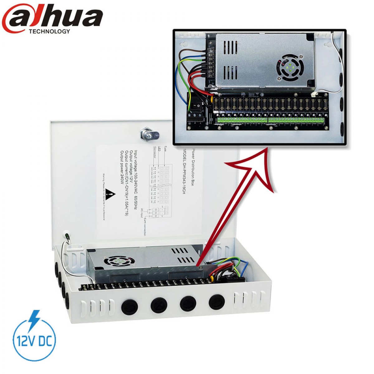 Ce coffret permet d’alimenter jusqu’à 19 caméras analogiques 12 V. Chaque voie délivre un courant indépendant, ce qui assure une stabilité optimale même sur de grandes installations de vidéosurveillance.