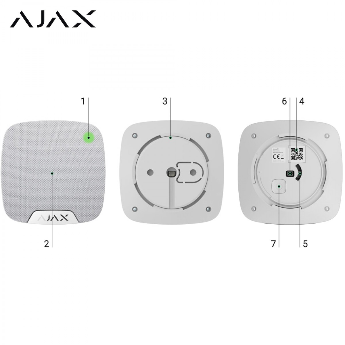 Grâce à son format petit et discret, la sirène intérieure Ajax HomeSiren se fixe facilement dans un couloir, une entrée, un salon ou près d’un clavier de commande. Son design épuré, en noir ou en blanc, lui permet de se fondre dans la décoration sans attirer l’attention, tout en restant parfaitement visible pour dissuader un intrus.