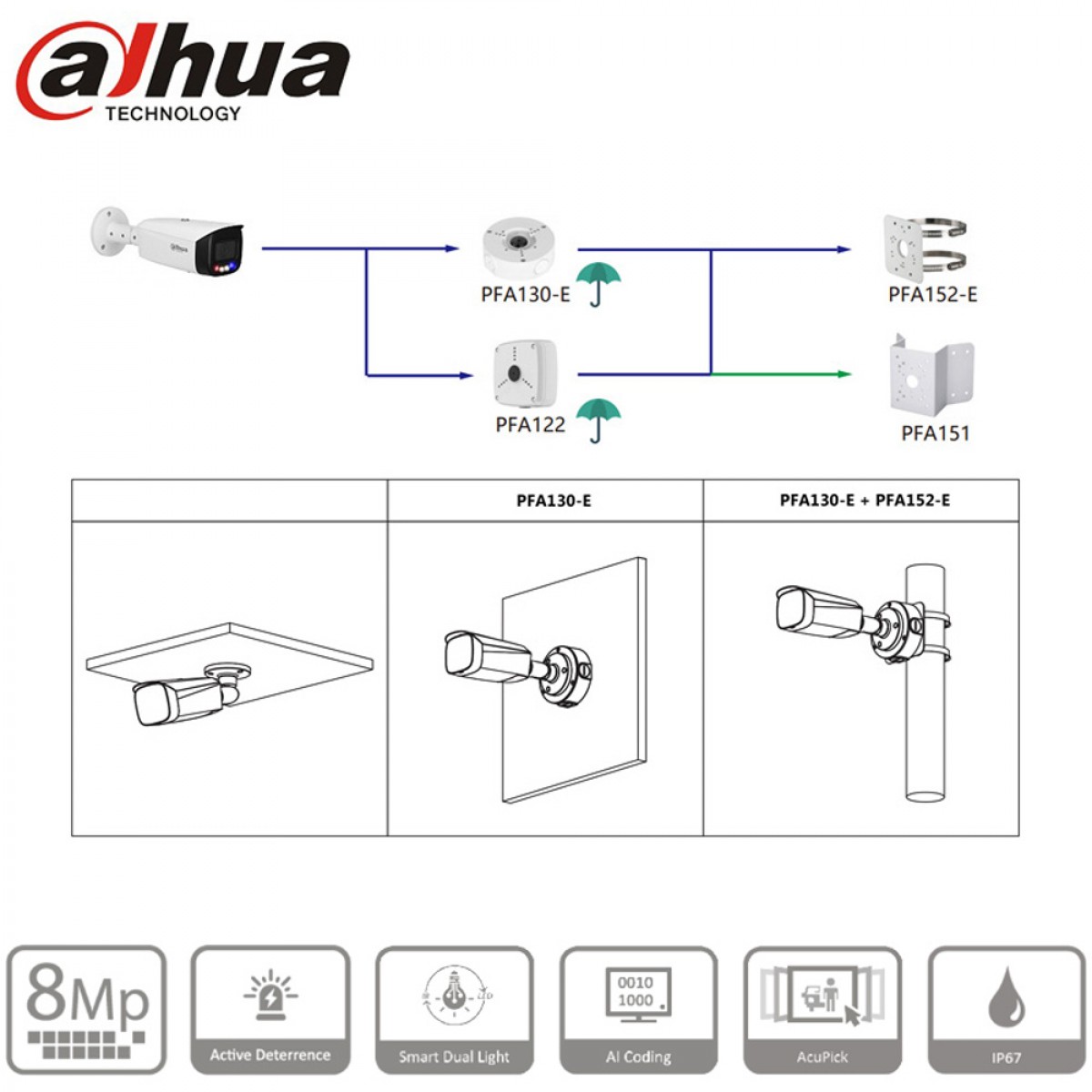 Etiquettes : caméra IP Dahua 8MP, caméra tube Dahua TIOC, caméra FullColor 4K, caméra protection périmétrique Dahua, caméra IP PoE 8 mégapixels, caméra dissuasion active Dahua, caméra extérieure IP67 8MP, caméra IA WizSense Dahua