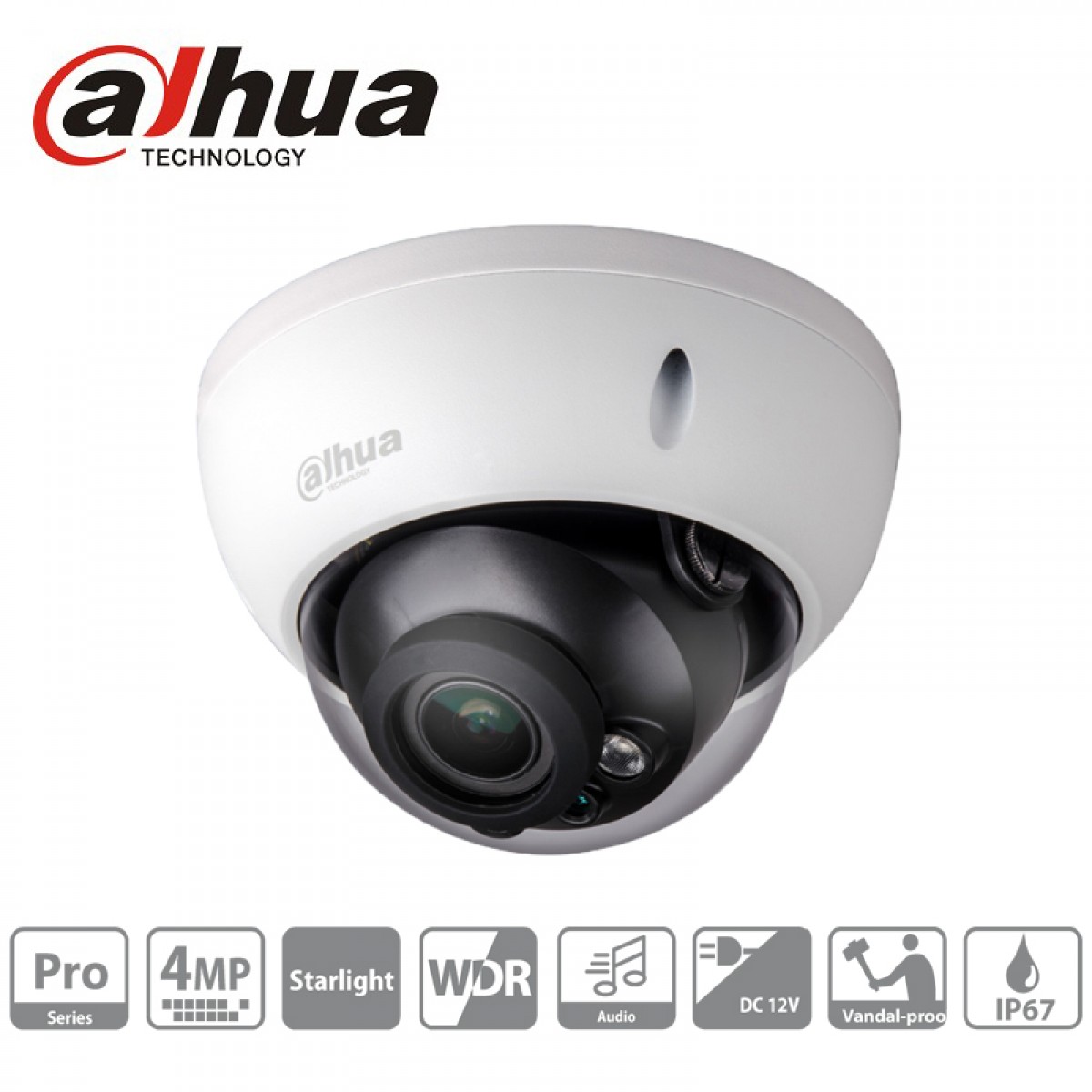 Conçue pour résister aux conditions extérieures, la HAC-HDBW2402R-Z dispose d’une protection IP67 contre la poussière et l’eau, ainsi qu’une résistance IK10 aux chocs. Elle se connecte facilement à tout enregistreur DVR BNC Dahua compatible 4 MP et fonctionne en alimentation 12 V DC. Livrée sans transformateur (en option sur notre site).