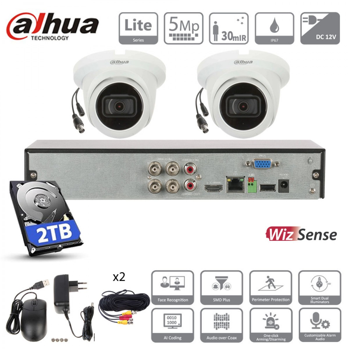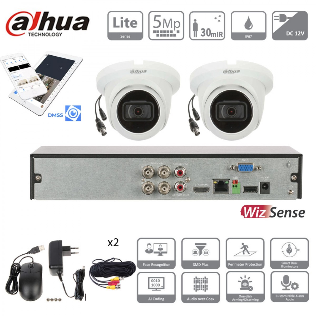 DAHUA Kit 2 caméras coaxial 5 mpx dômes infrarouge