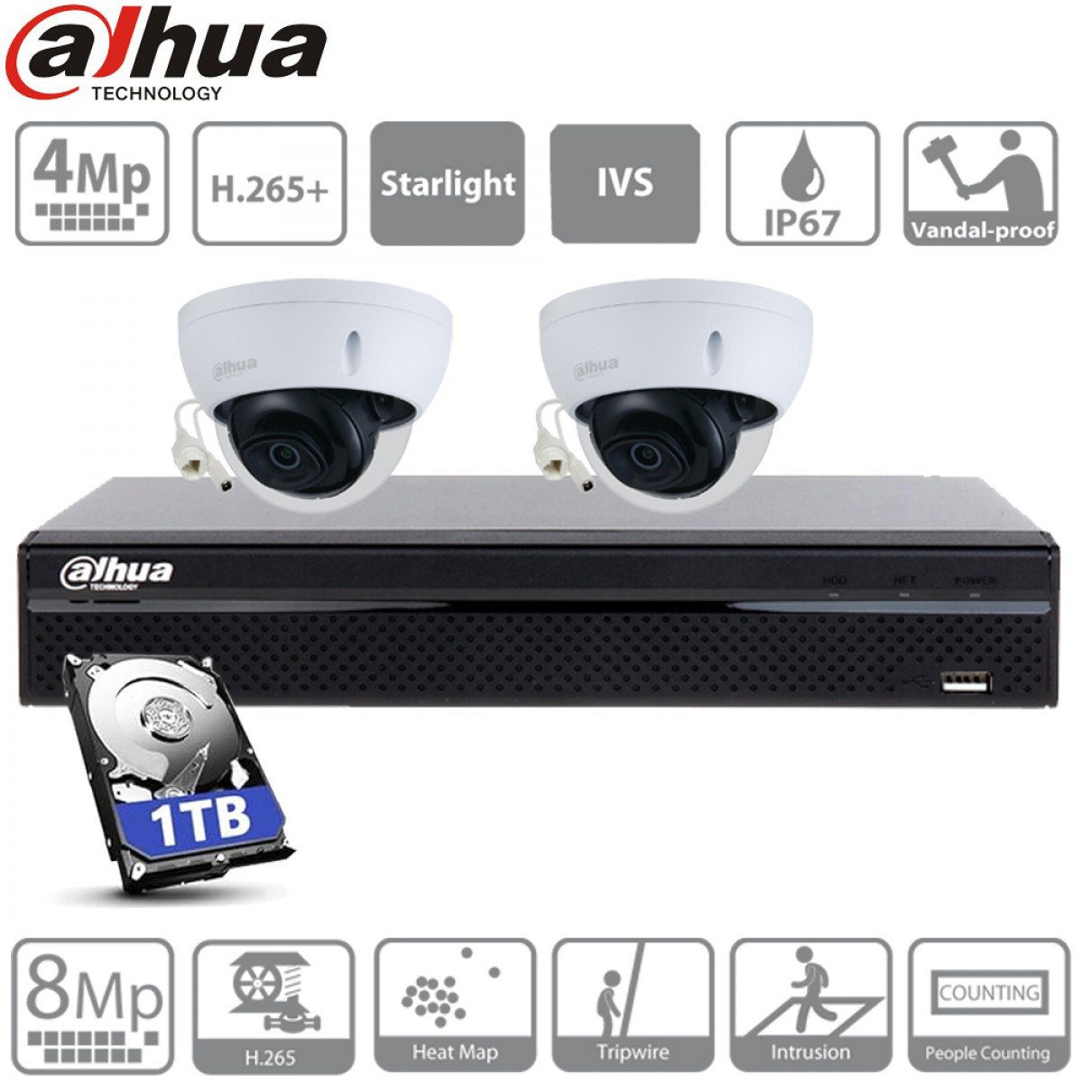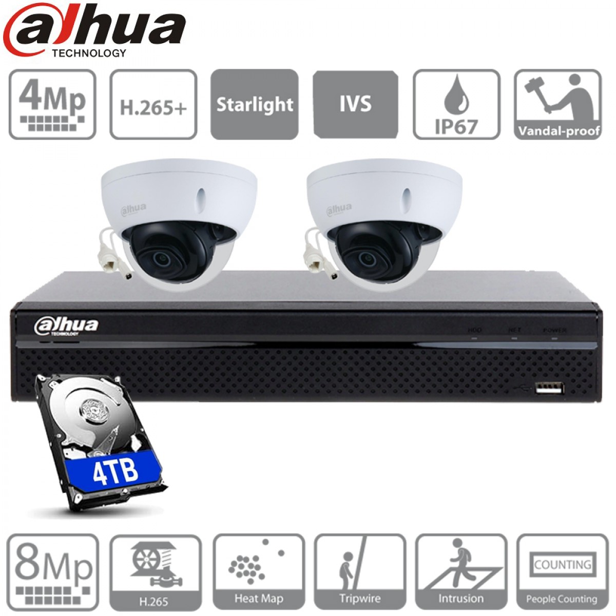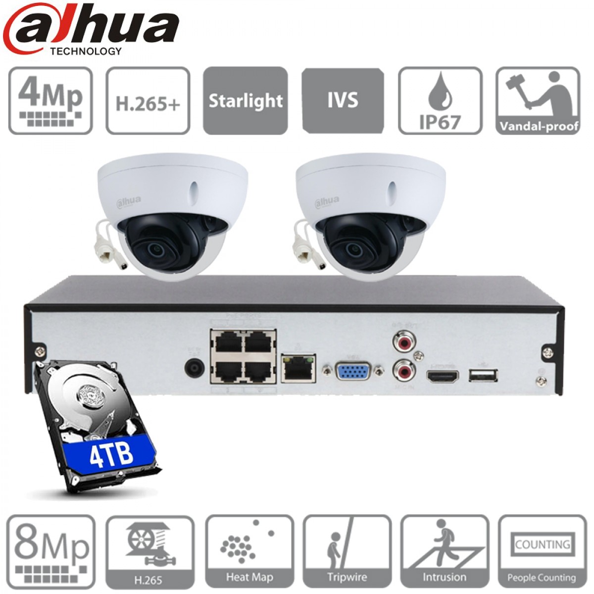 Dahua kit IP Poe 2 caméras 4 megapixels dômes à bulle