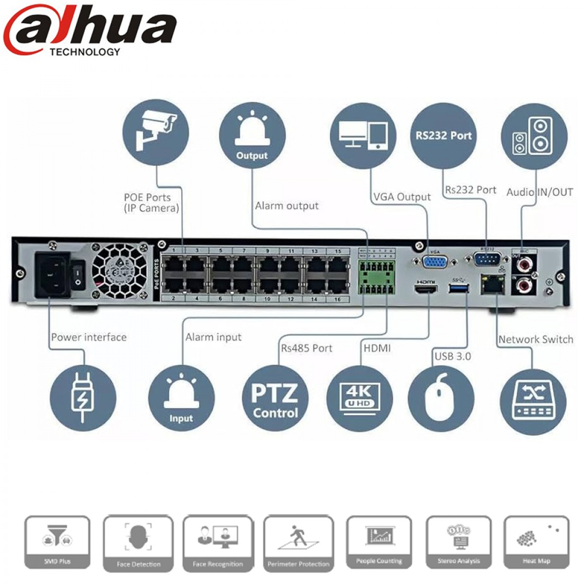 Etiquettes : NVR Dahua, enregistreur IP Dahua, NVR 16 voies, NVR 16 ports PoE, NVR 4K Dahua, NVR IA Dahua, SMD Plus, reconnaissance faciale, protection périmétrique, comptage de personne, vidéosurveillance professionnelle