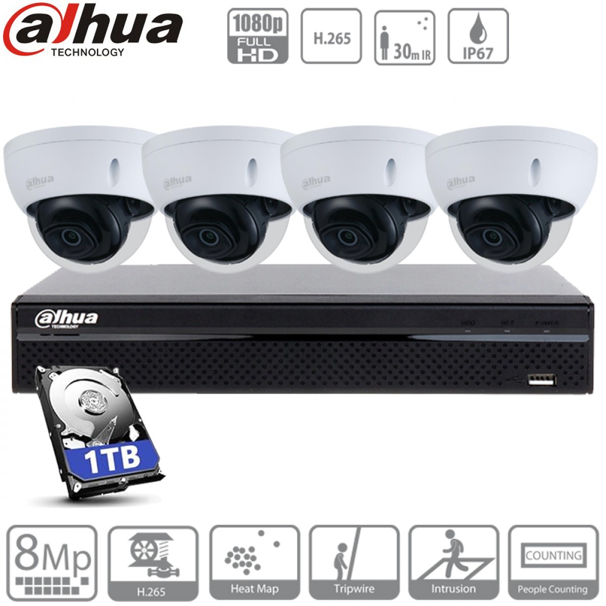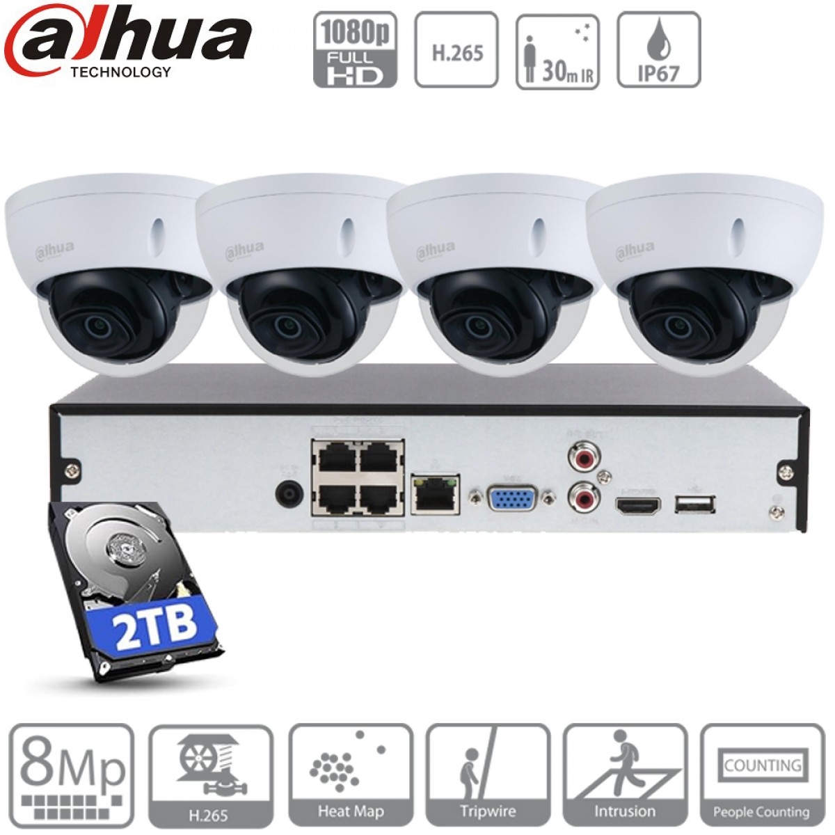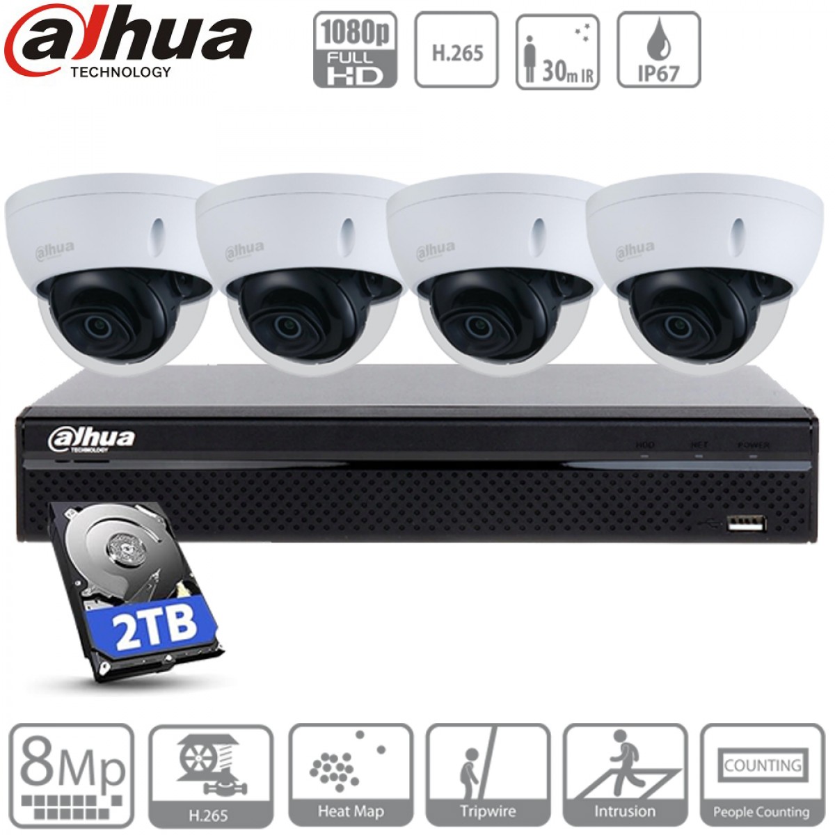Dahua kit 8 caméras IP PoE dômes - 2 Mpx