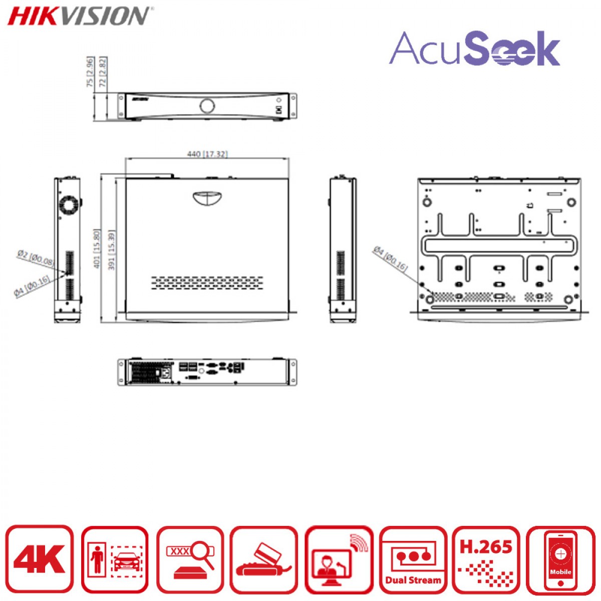 NVR Hikvision 32 voies AcuSeek VPro – DS-7732NXI-I4/VPro enregistreur IP