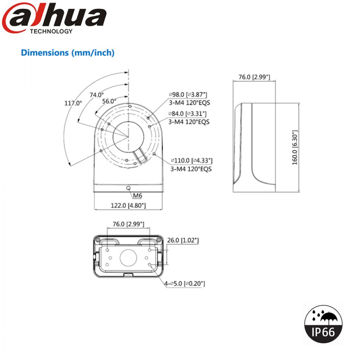 Le support mural Dahua PFB203W protège efficacement les connecteurs contre l’humidité, la poussière et la corrosion. Sa conception déportée facilite l’orientation de la caméra et permet d’obtenir un angle de vision optimisé, notamment avec les caméras dôme Dahua.