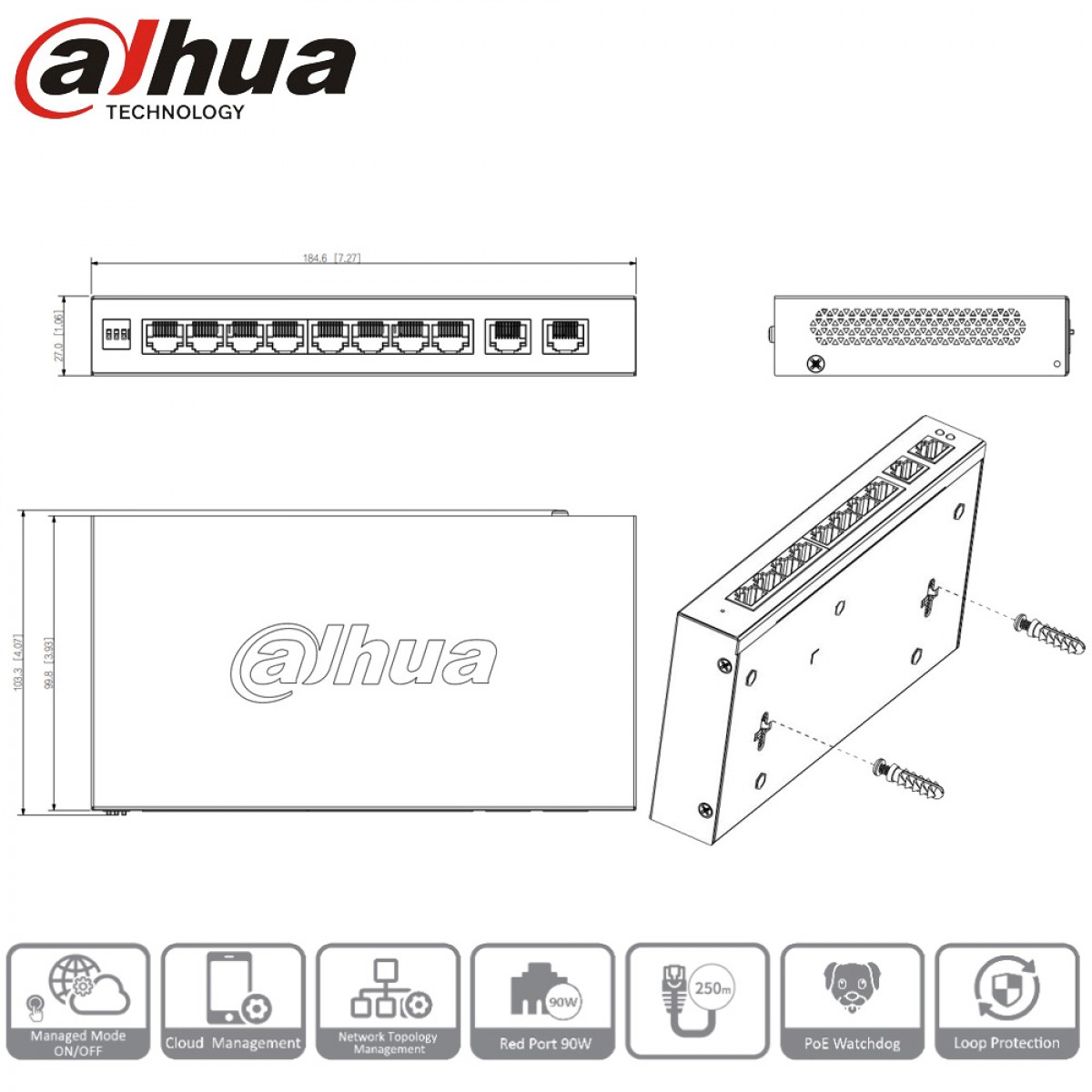 Caractéristiques principales du switch PoE Dahua 8 ports