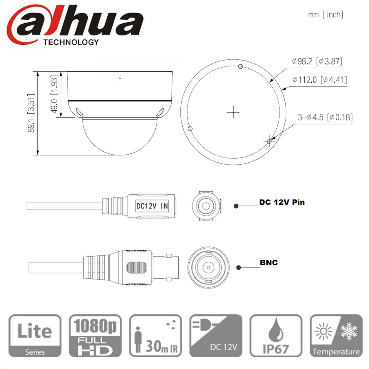 Etiquettes : caméras 2 mégapixels hac-hdbw1200ep, dôme, bulle, extérieur, infrarouge, 30m, dahua, bnc, anologique analogique