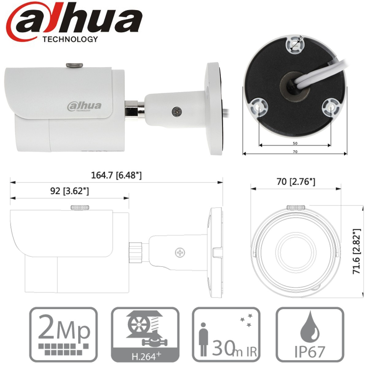 DAHUA HFW2231S-S-S2 Caméra bullet IP POE 2Mégapixels