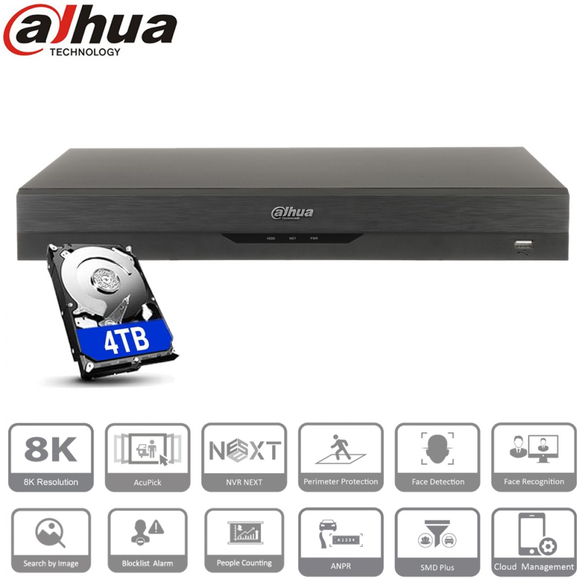 Ce NVR Dahua accepte des caméras IP jusqu’à 32 mégapixels et offre une bande passante élevée, idéale pour les systèmes multi-caméras haute résolution.