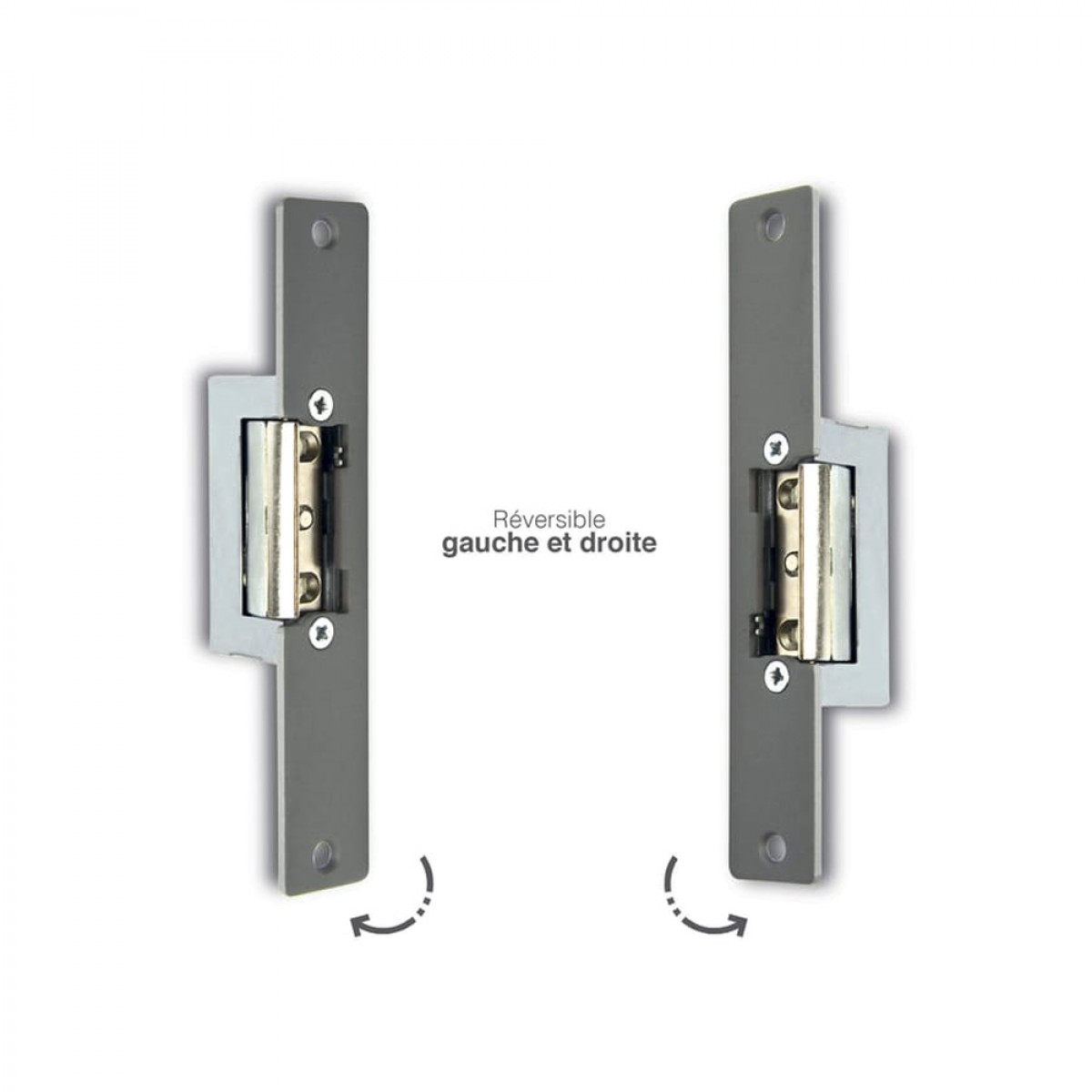 La gâche est équipée d’une têtière en acier renforcé, offrant une résistance optimale à l’usure et une compatibilité avec tous types de portes. Elle est également réversible : installation possible à droite ou à gauche selon votre configuration.